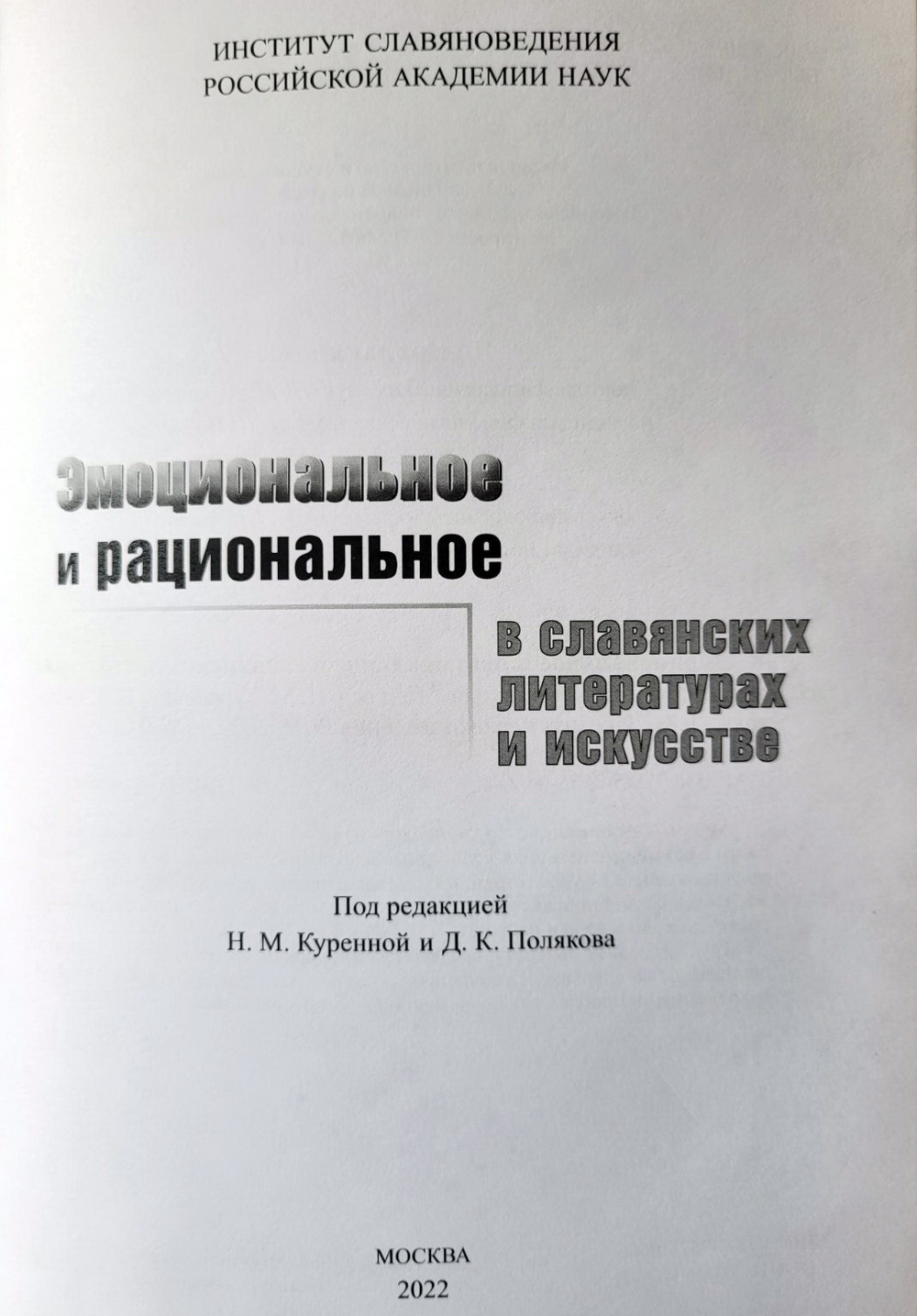 Летась, напрыканцы года, у Маскве выйшла кніга «Эмоциональное и рациональное в славянских литературах и искусстве». Сумесны выдавецкі праект Інстытута літаратуразнаўства імя Янкі Купалы Нацыянальнай акадэміі навук Беларусі і Інстытута славяназнаўства Расійскай акадэміі навук. У ліку аўтараў гэтага унікальнага выдання – і госці нашага эфіру: доктар філалагічных навук, вядучы навуковы супрацоўнік Інстытута літаратуразнаўства імя Янкі Купалы НАН Беларусі Святлана КАЛЯДКА і доктар філалагічных навук, прафесар Мінскага дзяржаўнага лінгвістычнага універсітэта Любоў ЛЯЎШУН.