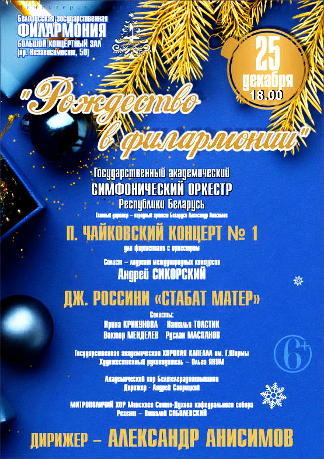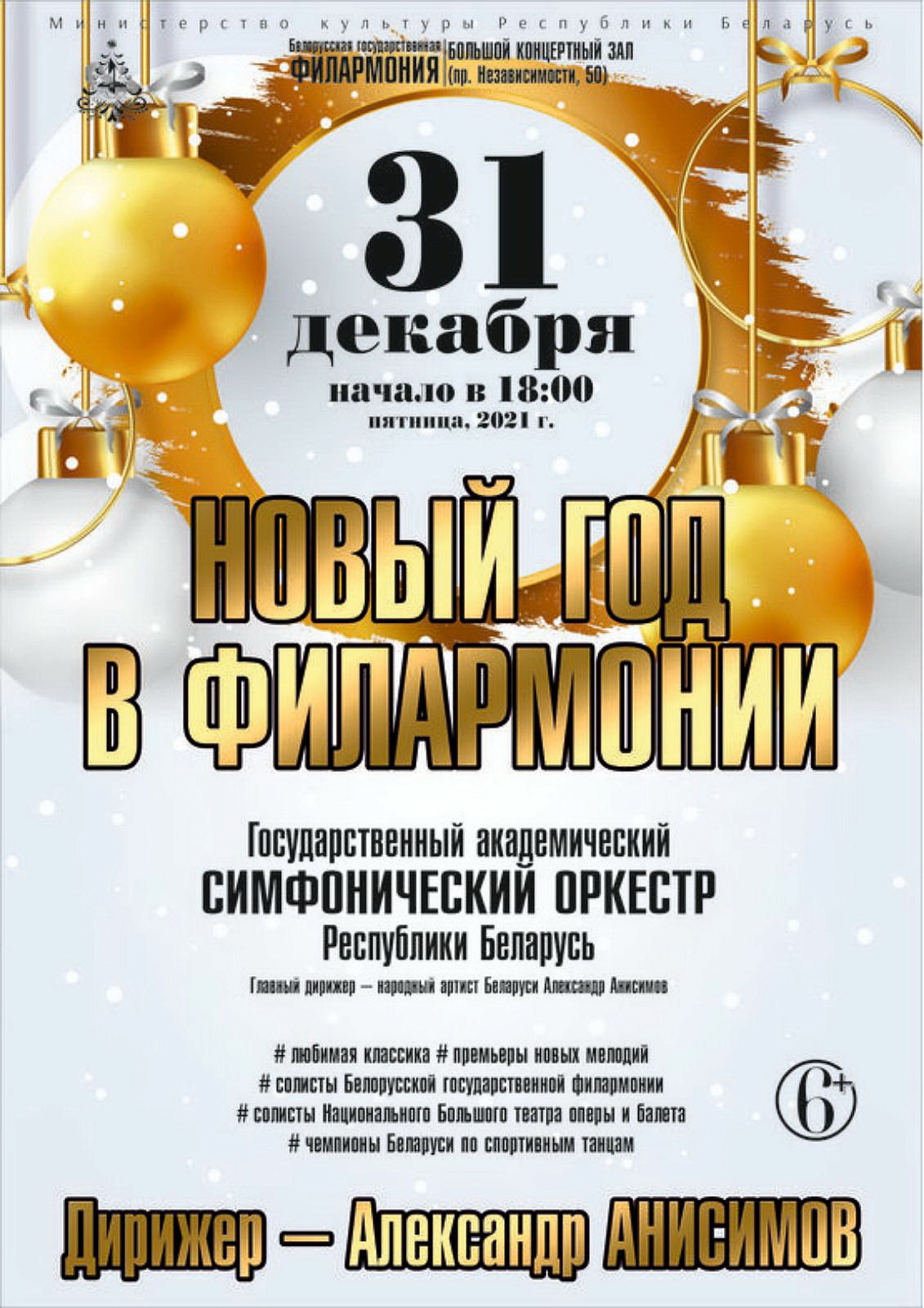 Адразу дзве праграмы прысвячае Калядам і Новаму году Дзяржаўны акадэмічны сімфанічны аркестр Беларусі пад кіраўніцтвам народнага артыста Беларусі, лаўрэата дзяржаўнай прэміі Беларусі АЛЯКСАНДРА АНІСІМАВА!