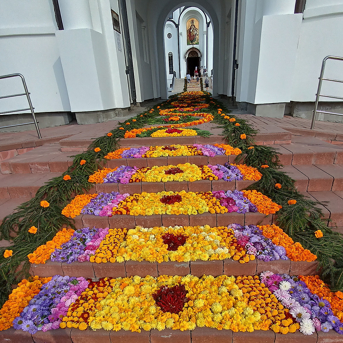 З Благадатным Іерусалімскім Агнём крочым да Храма святога Серафіма Сароўскага. Пасля службы Святы Агонь множыцца па лампадках прыхаджан і расцякаецца па Белаазёрску.