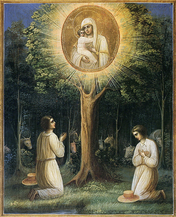В цветении дикой груши увидели некогда пастушки икону Богородицы, сиявшую в лучах солнца. Принесли хозяину, тот припрятал святыню, а когда пришли гости, решил похвастаться находкой, но... иконы в заветном месте не оказалось. Вскоре пастушки вновь увидели исчезнувшую икону на грушевом дереве. Хозяин понял, что это знамение Божие, и не в драгоценный ларец спрятал икону, а построил для нее дом – Божий храм.