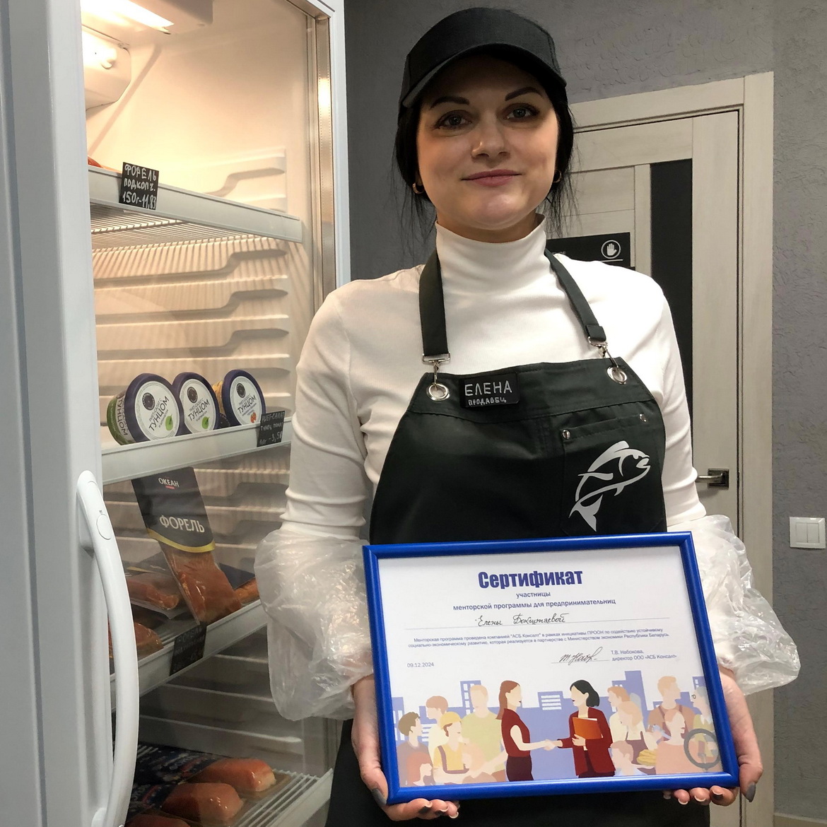 У рыбнай спецыялізацыі знайшла сябе Алена Барштаева. З дзяцінства любіць рыбачыць. Уцягнула ў бізнес мужа-рыбака, сваіх родных. Пасля інтэрнет-пляцоўкі адкрыла новы рыбны магазін.