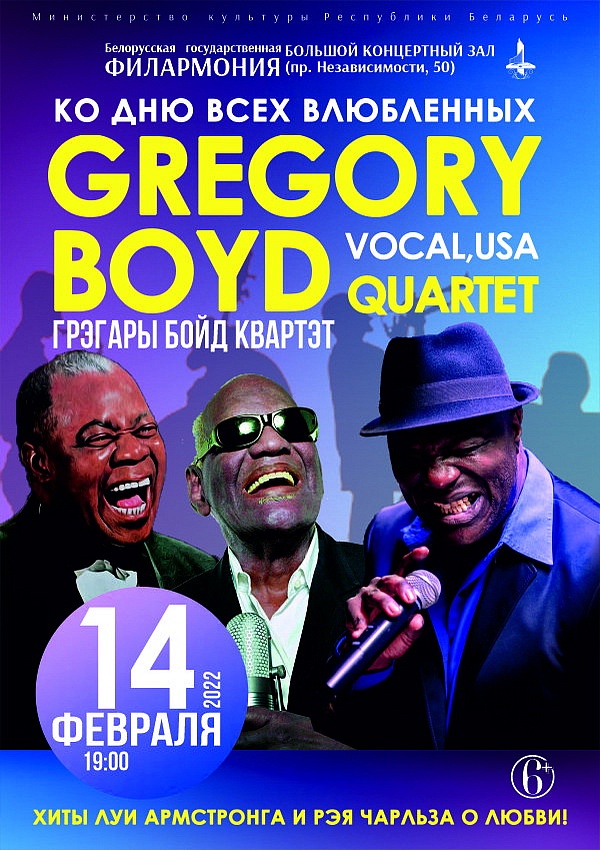 Так лічаць крытыкі пра творчасць выдатнага амерыканскага джазавага музыканта з сусветным імем ГРЭГАРЫ БОЙДА. Яго творчасць вызначаецца шчырай, яскравай выканальніцкай манерай, віртуознай вакальнай тэхнікай і неверагоднай харызмай. ГРЭГАРЫ – універсальны музыкант, якому падуладныя джаз, фанк, блюз і многія іншыя музычныя жанры, таму яго творчасць немагчыма ўпісаць у неякія асобныя межы.