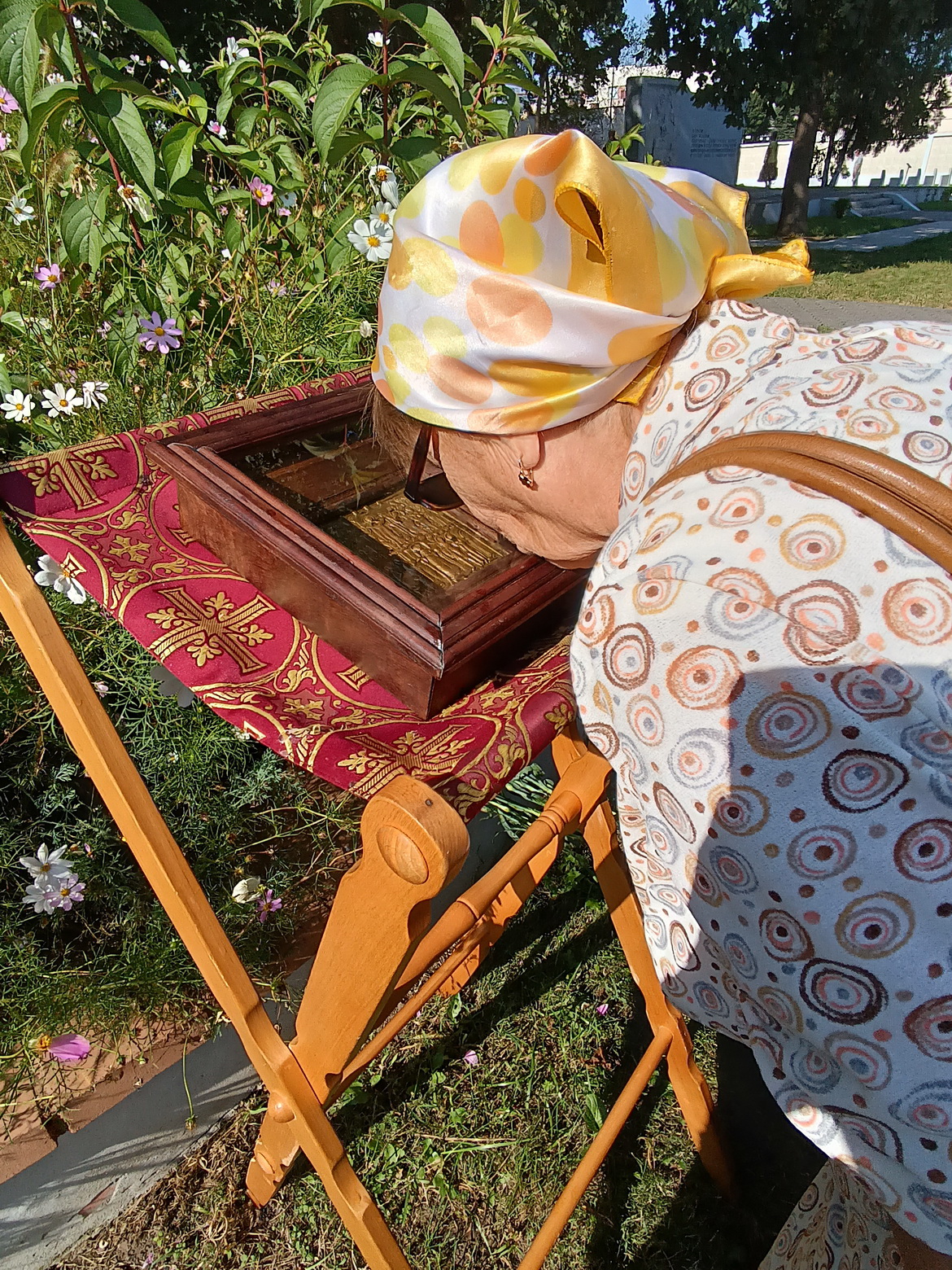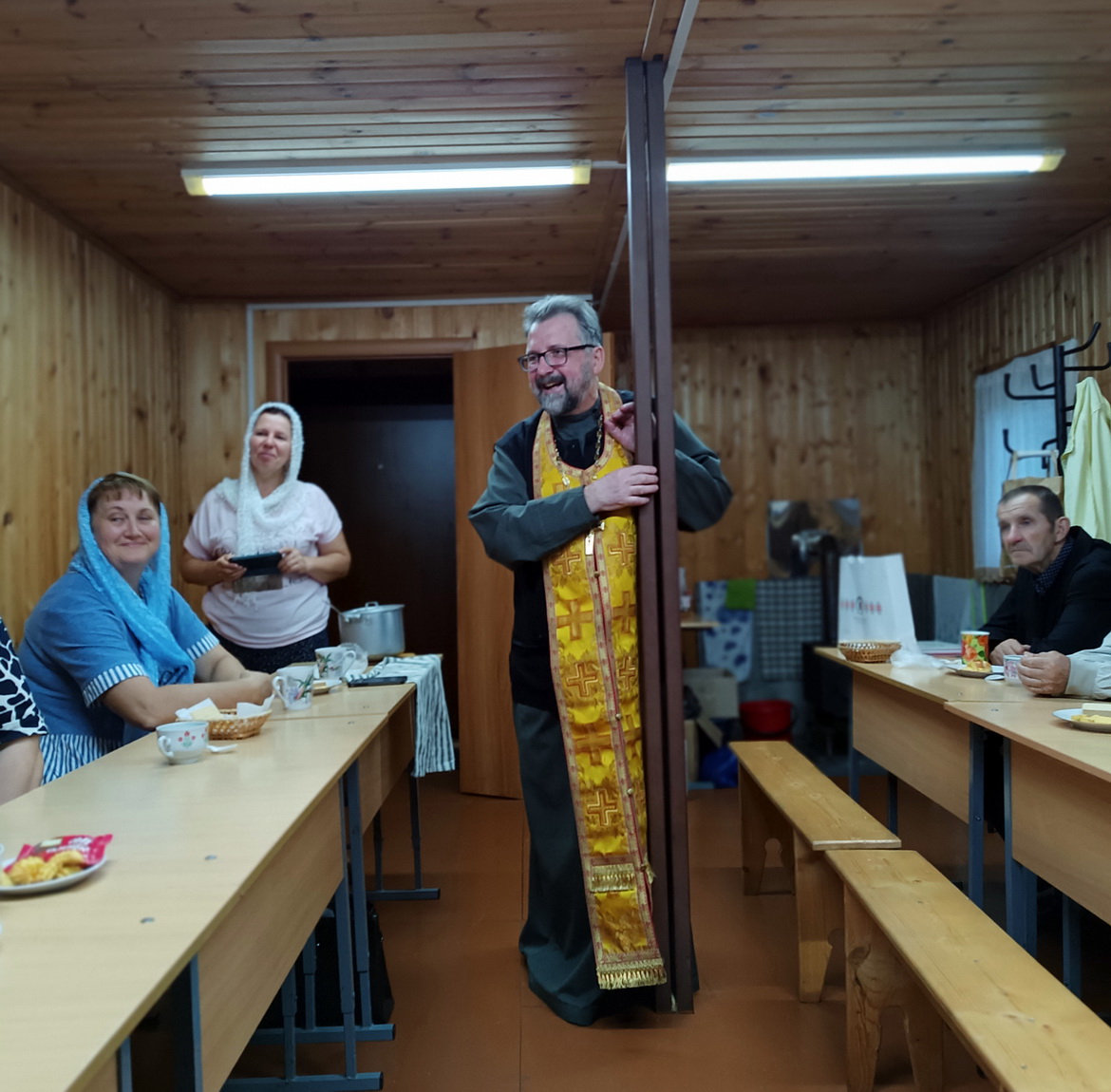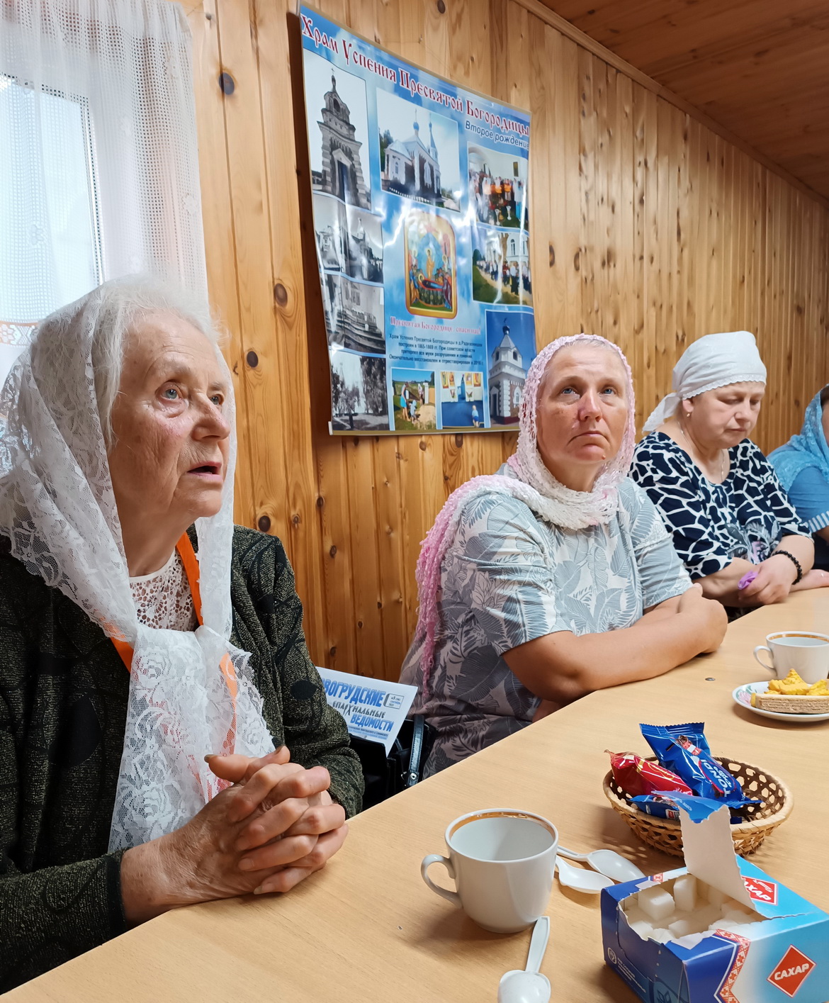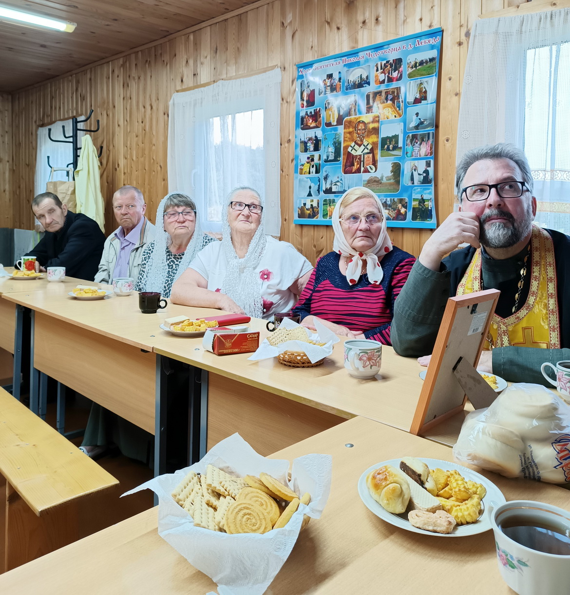 З айцом Уладзімірам падыйшлі да Дома культуры, дзе пачалася сустрэча з удзельнікамі «Дарогі да святыняў».