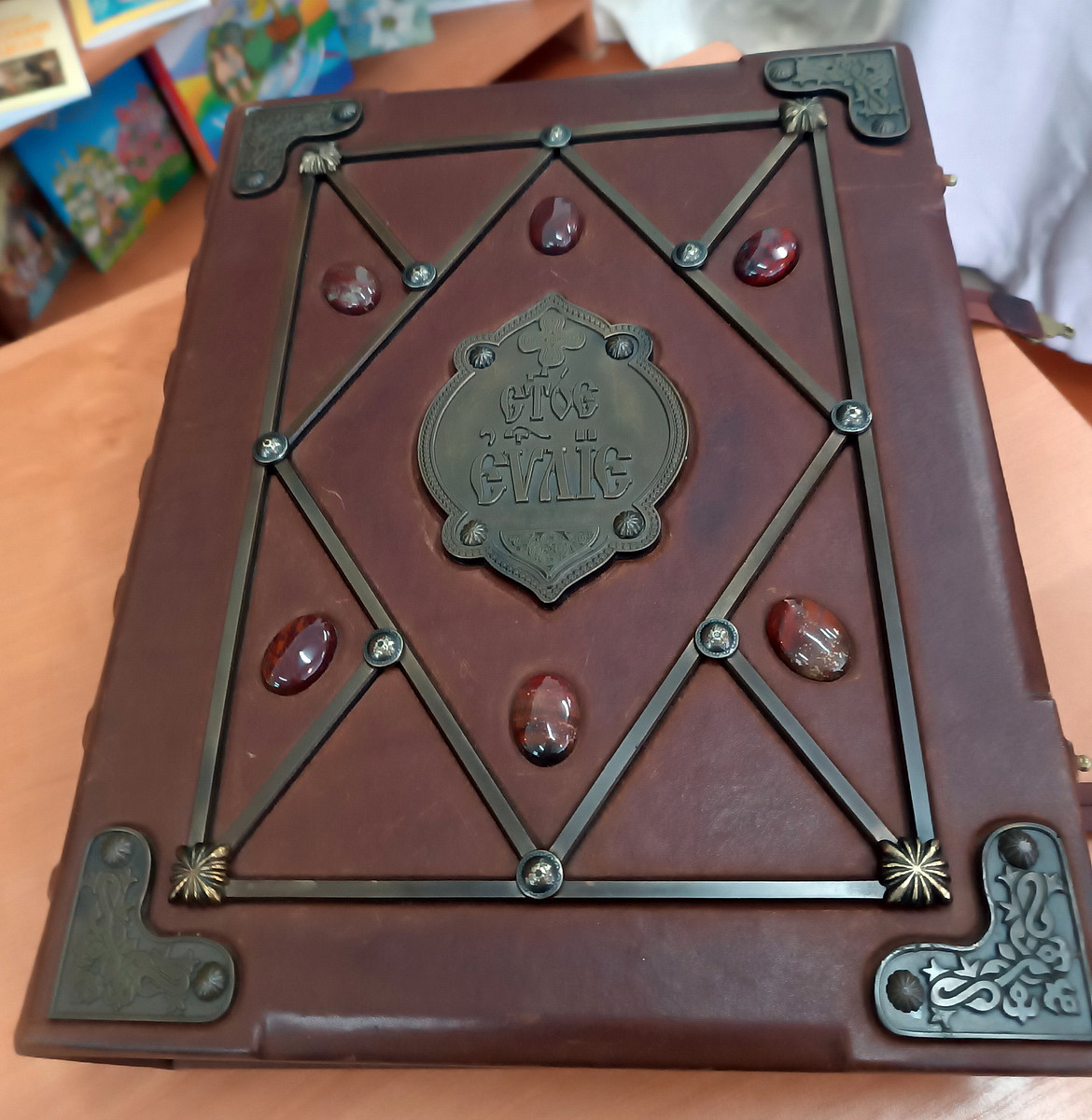 Праз некалькі хвілін ля муроў Лідкага замка, у памяшканні гарадской бібліятэкі, старшыня Выдавецкага аддзела Беларускага экзархата Алег Кунцэвіч расказвае пра айчынныя старадаўнія Евангеллі.