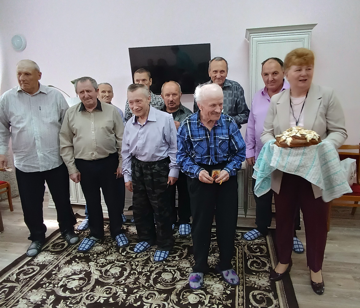 Вёска Лукашына. Тут, у доме з прыгожымі кветнікамі, жывуць састарэлыя людзі. Нас уважліва слухаюць, беражліва прымаюць апаленыя Святым Агнем свечкі, перадаём каравай на пачастунак. Потым размаўляем з Марыяй Іванаўнай Ледаховіч – гаспадарыняй прытулку.