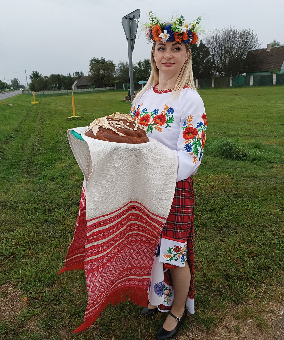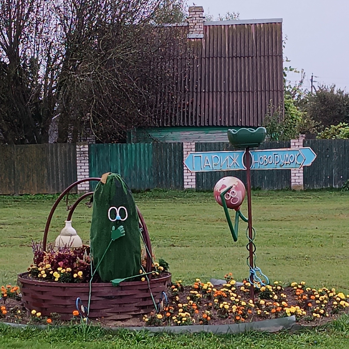 Ля кветніка, на раздарожжы, жартаўлівая шыльда: Парыж-Наваградак. Тут нас вітае дзяўчына з караваем. Праз некалькі хвілін – Іўе.